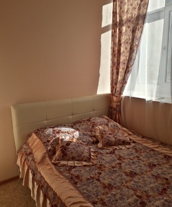 Небольшой, уютный, светлый номер с широкой двуспальной кроватью с ортопедическим матрацем отлично подойдет для комфортного отдыха пары путешественников. В номере есть комод и вешалка для одежды, прикроватная тумбочка, зеркало, складной столик, кондиционер.
