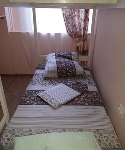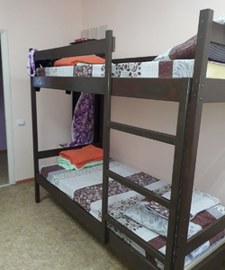 Хороший вариант размещения для дружной компании на сутки и более. В номере 3 двухъярусные кровати с новыми удобными матрацами, шкаф и вешалки для одежды, умывальник с зеркалом в номере в комнате, кондиционер.